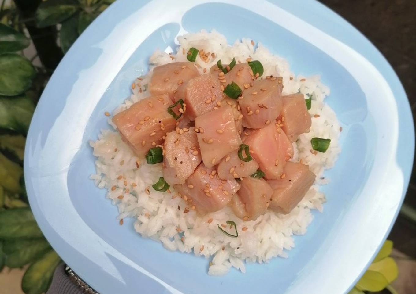 - Partir el medallón de atún en cubos y enjuagar. Exprimir los limones y la naranja y agregar el jugo, la Maggi, la salsa de soya, la salsa inglesa, el aceite de oliva y el cebollín picadito. Dejar reposar en el refri 20 minutos y servir con arroz frío. Se puede decorar con cebollín y agregar más salsa de soya