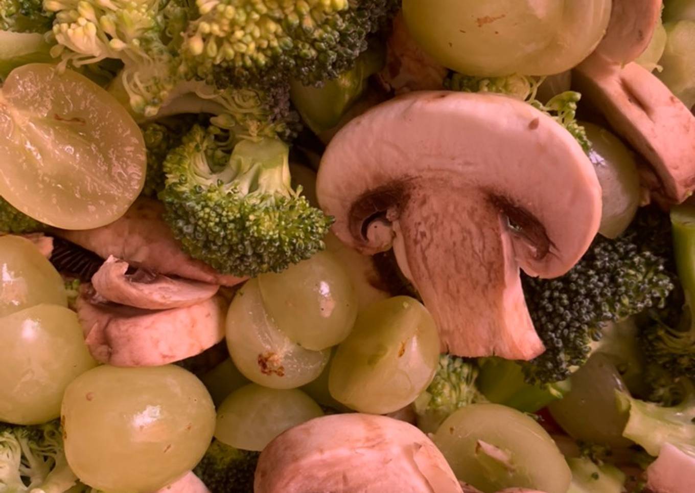 Instructions to make to make Ensalada de Brócoli, champiñones y uva verde