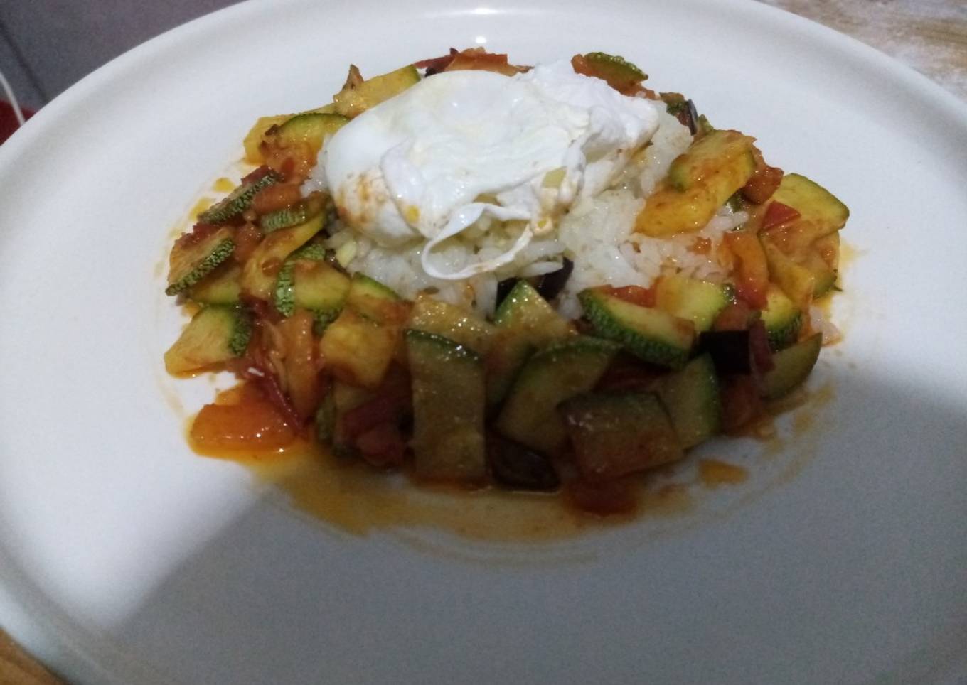 - Retirar del agua el huevo y montar con las verduras y arroz.